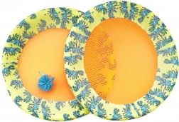 Genießen Sie zwei Spielmöglichkeiten mit diesem Set aus Scheiben und Ball, ideal für Spaß im Freien.