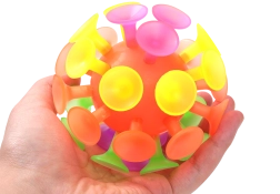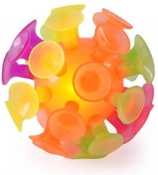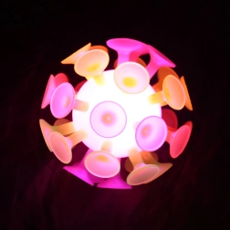 Unterhaltsamer Ball für Kinder und Erwachsene mit Saugnäpfen, die auf glatten Oberflächen haften. Beim Aufprall leuchtet er automatisch auf, was attraktive Lichteffekte und noch mehr Spaß beim Spielen drinnen und draußen garantiert.