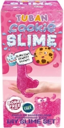 Stelle deinen eigenen farbigen Slime mit Keksduft mit dem TUBAN-Set her. Einfache Zubereitung, sichere Zusammensetzung ohne Borax und ein effektvoller, glitzernder Look dank rosa Glitzer. Ideal für Kinder, die kreative Experimente und sensorischen Spaß lieben.