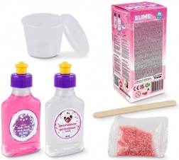 Rosa PVA-Kleber mit Vanilleduft 100 ml, Aktivator 100 ml, rosa Glitzer 1,5 g, Spatel, verschließbare Dose