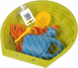Das Set enthält Harke, Gießkanne, Schaufel und 2 Sandformen, die das Spiel noch unterhaltsamer machen.