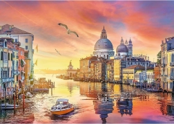 Tauchen Sie ein in die schöne Welt Venedigs bei Sonnenuntergang mit diesem einzigartigen Puzzle. TREFL Unlimited Fit Technology (UFT) ermöglicht es Ihnen, unendlich viele Collagen durch eine einzigartige Prägetechnologie zu erstellen, die die Verbindung unterschiedlicher Motive erlaubt. Basis ist die höchste Qualität der blauen Kartonunterlage, die Langlebigkeit sicherstellt.