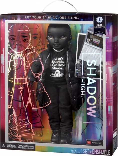 Entdecken Sie die Puppe Shadow High Rexx McQueen, die mit einem Laptop und Telefon geliefert wird, einem perfekten Accessoire für Kinder ab 6 Jahren zur Förderung von Fantasie und Kreativität.