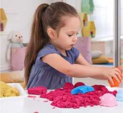 Das Spielen mit kinetischem Sand entwickelt die Feinmotorik und kreatives Denken der Kinder. Die spezielle Textur und plastische Struktur des Sandes bietet ein außergewöhnlich angenehmes haptisches Erlebnis. Das Umschütten des Sandes wirkt entspannend und beruhigend.