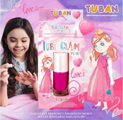 Tuban Tubi Glam bringt einen rosafarbenen Perlmutt-Nagellack, ideal für kleine Modefans und die neuesten Trends. Entwickelt mit Blick auf Sicherheit und einfache Anwendung, ist dieser Lack zu 100 % sicher für die empfindlichen Nagelplatten von Kindern.
