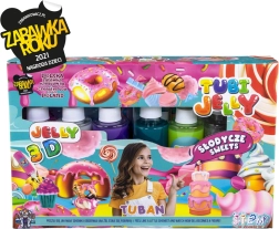 Verwandeln Sie Gelee mit Tubi Jelly in erstaunliche 3D-Kreationen! Werden Sie zum kleinen Chemiker und beobachten Sie, wie sich das Gel in dreidimensionale Figuren verwandelt! Tubi Jelly ist eine einzigartige Modelliermasse, die nach dem Mischen mit einem speziellen Aktivator die Herstellung von Gelfiguren ermöglicht. Entdecken Sie die unterhaltsame und kreative Welt von Tubi Jelly!