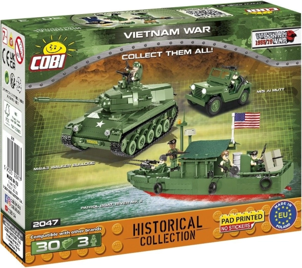 Bauen Sie die Atmosphäre des Vietnamkriegs mit einem Trio detailreich gestalteter Figuren nach. Der Vietcong-Soldat trägt die typische Uniform, einen Strohhut und das ikonische AK‑47. Der amerikanische Fallschirmjäger der 101. Luftlandedivision hat den Adleraufdruck auf der Schulter und ist mit einem M16 ausgerüstet. Die dritte Figur stellt einen US Marine mit Schutzweste auf nacktem Oberkörper, realistischer Tarnhelm und einem M16 mit Granatwerfer dar.