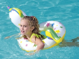 Das bunte Einhornmotiv mit Sternchen zieht die Blicke auf sich und verwandelt das Baden in stundenlangen Spaß.