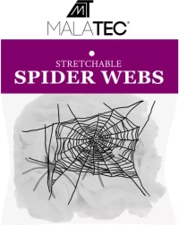 Das künstliche Spinnennetz von MALATEC ist eine unverzichtbare Dekoration für Halloween. Das elastische Material lässt sich leicht dehnen, reißen und formen, sodass Sie im Handumdrehen ein authentisch wirkendes Spinnennetz auf Möbeln, Geländern, Türen oder im Schaufenster schaffen. Die Fasern sind dicht und haftend und sorgen nach dem Auseinanderziehen für eine große Abdeckung von bis zu 2,5 m² und einen perfekt gruseligen Look.