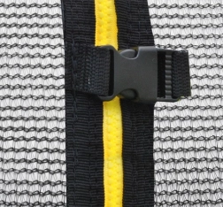 Die Installation ist schnell und einfach: Das Netz wird an 8 Stangen befestigt und der untere Bereich mit einer Kordel gesichert. Der Einstieg ist mit Reißverschluss und Sicherheitsschnallen ausgestattet, um die Sicherheit beim Springen zu erhöhen. Dank der universellen Abmessungen eignet es sich für Trampoline verschiedener Hersteller.