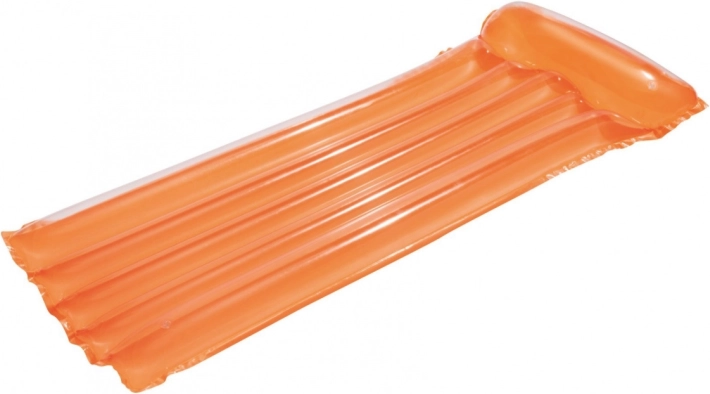 Genießen Sie entspanntes Treiben auf dem Wasser mit dieser orangefarbenen aufblasbaren Bestway-Luftmatratze mit den Maßen 183 × 76 cm. Sie bietet ein integriertes Kopfkissen für höheren Komfort, eine stabile Mehrkammerkonstruktion und robustes PVC-Material. Dank einer Tragfähigkeit bis 90 kg und dem Reparaturflicken im Lieferumfang ist sie die ideale Wahl für Pool und Strand.