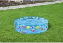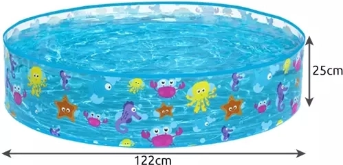 Die Spezifikationen des Pools umfassen eine Kapazität von 277 Litern und die Maße 122 cm x 25 cm, was ideal für kleine Kinder ist. Das Produkt wiegt nur 950 g, ist also leicht zu handhaben und tragbar. Im Lieferumfang ist auch ein wasserdichter Reparaturflicken enthalten, der schnelle Reparaturen ermöglicht, selbst wenn der Pool mit Wasser gefüllt ist.