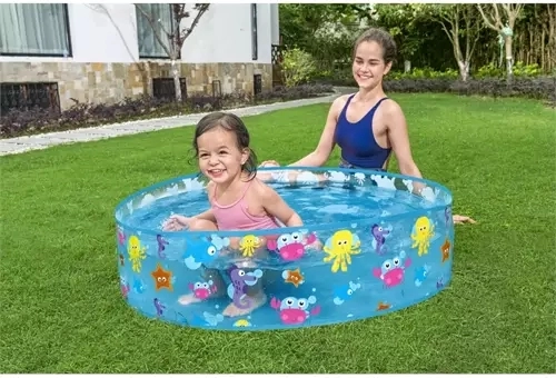 Aufblasbarer Kinderpool der Marke Bestway ist ideal für Spaß an heißen Sommertagen. Mit klaren und spielerischen Motiven von Meerestieren ist der Pool eine großartige Wahl für Kinder ab zwei Jahren.