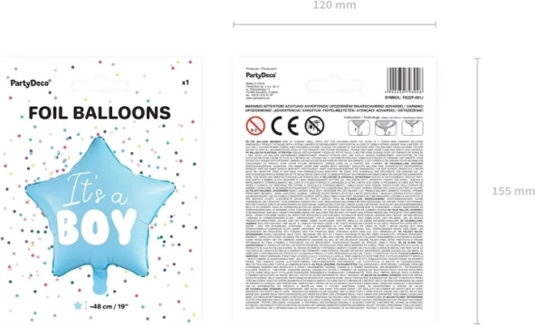 Begrüßen Sie Ihren kleinen Prinzen mit einem stilvollen und eleganten Folienballon in Sternform. Dieser Ballon ist ideal für Babyshower und weitere besondere Momente mit Familie und Freunden.