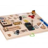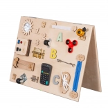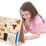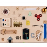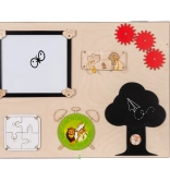 Dieses multifunktionale Holzspielbrett ist voll von verschiedenen Spielelementen, die Kindern helfen, ihre Fähigkeiten zu entwickeln. Kinder können mit verschiedenen interaktiven Mechanismen spielen, die stundenlangen Spaß garantieren.