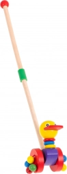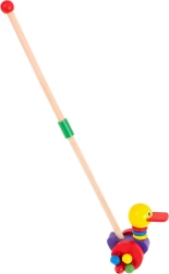 Diese farbenfrohe Holzente ist der ideale Begleiter für Spaziergänge. Sie ist so gestaltet, dass sie die kindliche Motorik und Bewegung unterstützt. Dank des einfach zu handhabenden Holzstabs kann die Ente geführt werden oder Kinder können alleine mit ihr spielen.