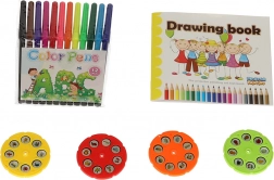 - 12 bunte Marker sind im Set enthalten, die das Erstellen aller mitgelieferten Muster erleichtern! Die 4 Scheiben enthalten insgesamt 32 verschiedene Bilder, deren Nachzeichnung Kindern viel Spaß bereiten wird.