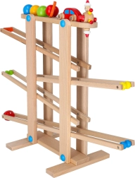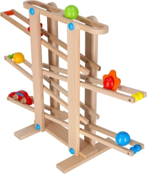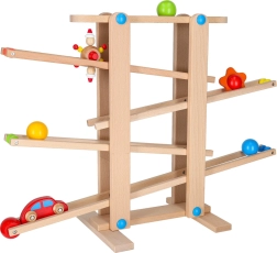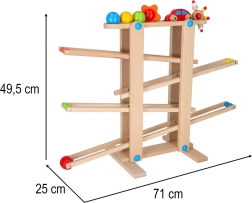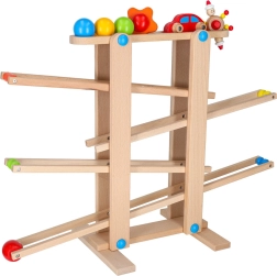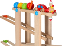 Dieses große Holz-Kugelbahn-Set XXL bietet Kindern stundenlangen Spaß und Lernen. Einfach die Kugel oder das Auto oben loslassen und zusehen, wie sie über die mehrstufigen Rampen nach unten sausen. Schlichte Formen, natürliche Materialien und ein klarer Zweck entsprechen perfekt den Montessori-Prinzipien – Förderung von Selbstständigkeit, Entdecken und Konzentration beim Spiel.