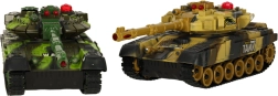 Set aus zwei RC-Panzern T90 in Wald- und Wüsten-Tarnung sorgt für realistische Gefechte für zwei Spieler. Infrarotschüsse, vibrierender Rückstoß, Treffer-LEDs und reiche Soundeffekte garantieren spannende Action. Die Steuerung auf 2,4 GHz ermöglicht sanftes Fahren, Turmdrehung und Schießen – ideal für stundenlangen Spaß.