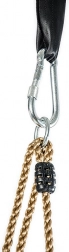 Ein stabiler Karabiner und das geflochtene Seil gewährleisten eine zuverlässige Befestigung auch bei intensiver Nutzung. Maximale Tragfähigkeit 75 kg.