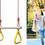 Das hölzerne Gymnastikreck mit Griffen ist eine großartige Wahl für aktive Kinder. Es bietet Spaß und fördert die Motorik, stärkt Armmuskeln und Koordination und lässt sich dank der verstellbaren Seile leicht an unterschiedliche Höhen anpassen. Geeignet für Garten, Terrasse und Innenräume, benötigt nur wenig Platz und hat eine Tragfähigkeit bis 100 kg.