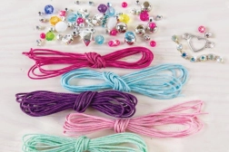 Textilschnüre (Stickgarne), Kunststoffperlen