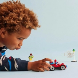 Der Diamantenraub löst ein aufregendes Abenteuer aus und bietet den Kindern endlose Möglichkeiten. Das Set enthält zwei Minifiguren - Spider-Man und Doc Ock - und ein Auto mit zwei leuchtenden Spinnennetzen. Ein spezieller Startklotz in Form eines Fahrgestells motiviert Kinder, das Fahrzeug von Spider-Man eigenständig zu bauen. Eine einfache Anleitung ist in Form einer illustrierten Broschüre verfügbar, und die LEGO Builder App bietet intuitive Werkzeuge zum Vergrößern und Drehen, die den Kindern helfen, das zu visualisieren, was sie bauen.