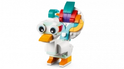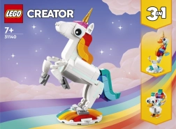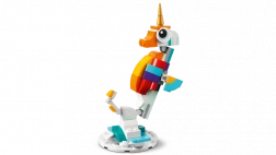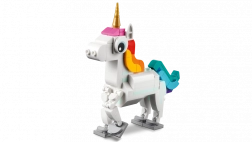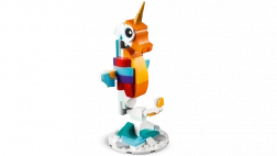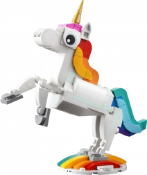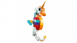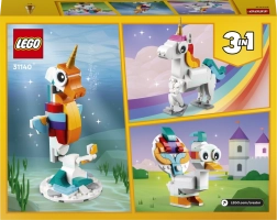 Entdecke die Welt der Fantasie mit dem LEGO Creator 3-in-1 Magischen Einhorn. Kinder ab 7 Jahren haben Spaß beim Bauen und Spielen mit drei Modellen in einem – Einhorn, Seepferdchen und Pfau. Bewegliche Teile, farbenfrohes Design und die Möglichkeit zur Präsentation auf einem Ständer verwandeln jedes Spiel in ein magisches Abenteuer.