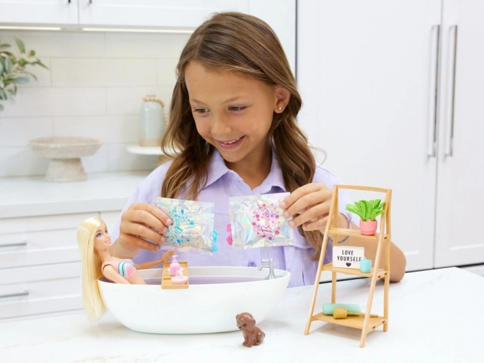 Barbie Relax – Bad mit Konfetti-Schaum und Badewanne, blonde Puppe und Zubehör