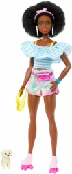 Diese Modepuppe bringt frischen Sommerstil und viele Möglichkeiten, die Fantasie zu fördern. Eine Rüschenbluse mit Streifen, pastellfarbene Sports-Shorts und rosa Rollschuhe unterstreichen ihren auffälligen Look. Nicht zu vergessen die lockige Afro-Frisur, die Charakter und Originalität verleiht.