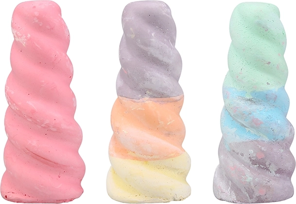 Ein Set Kreiden in Form eines Einhornhorns. 3 Stück.