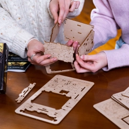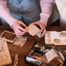 88 nummerierte Teile aus Birken-Sperrholz greifen passgenau ineinander, sodass Sie das Modell auch ohne Erfahrung leicht zusammenbauen. Die bebilderte Anleitung und ein QR-Code mit Hinweisen führen Sie zuverlässig durch den gesamten Prozess bis zur ersten Entriegelung.