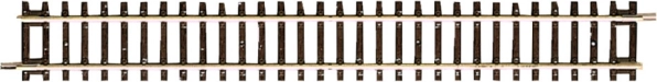 Gerades und detailliertes Gleis mit originalgetreuer Nachbildung von Holzschwellen. Hervorragende elektrische Leitfähigkeit und Korrosionsbeständigkeit dank speziellen Legierung.