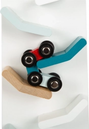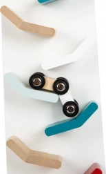 Die Kombination aus modernen Farben mit Weiß und natürlichem Holz macht dieses Spielzeug auch zu einem großartigen dekorativen Element.