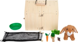 Im Set enthalten sind ein Plüschkaninchen und praktische Accessoires: Handfeger, Napf, Holzmöhre, ein Stück Salat sowie Filz-„Köttel“ für besonders authentische Pflegeszenen. Das Set ist eine ideale Alternative für Kinder, die noch kein echtes Haustier haben, und hilft, soziale und emotionale Fähigkeiten zu entwickeln.