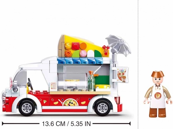 Der Pizza Wagen bietet unendliche Möglichkeiten für kreatives Spielen dank der Möglichkeit, ihn mit Bausätzen anderer Hersteller zu kombinieren.