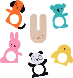 Das kreative Set enthält fünf bunte Garne, fünf Filztiere und einen Holzbommelerzeuger, alles Notwendige zur Herstellung eigener Bommel-Freunde.