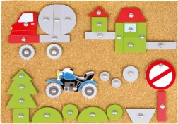 Dieses unterhaltsame und lehrreiche Hammer- und Nagelspiel ist ideal für kleine Konstrukteure. Kinder können eigene Verkehrsmittel entwerfen und sie auf der Korkplatte mit Hammer und Nägeln befestigen. Bunte und bedruckte Teile bieten unzählige Kombinationen und regen die Fantasie an.