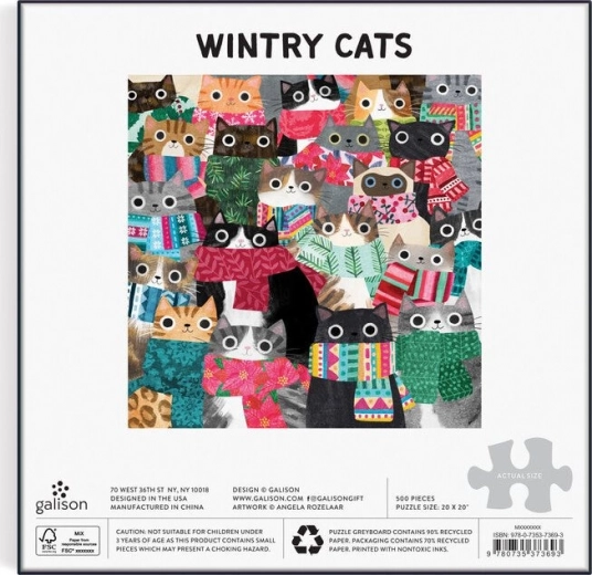 Galison Puzzle Winterkatzen, 500 Teile. Hochwertiger matter Druck, Motiv von Angela Rozelaar, umweltfreundliche Materialien mit FSC-Zertifizierung. Ideales Geschenk.