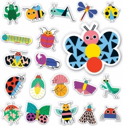 Bunte Schmetterlinge, Bienen und Marienkäfer fördern die Fantasie, das Erlernen von Formen und Farben sowie die Feinmotorik.