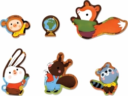 Das Bodenpuzzle Wald-Kindergarten ist ideal zur Förderung der Feinmotorik und des logischen Denkens bei Kindern. Das Set enthält 6 geformte Teile mit Motiven niedlicher Waldtiere wie Eichhörnchen, Kaninchen und Fuchs. Große Teile liegen gut in kleinen Kinderhänden.