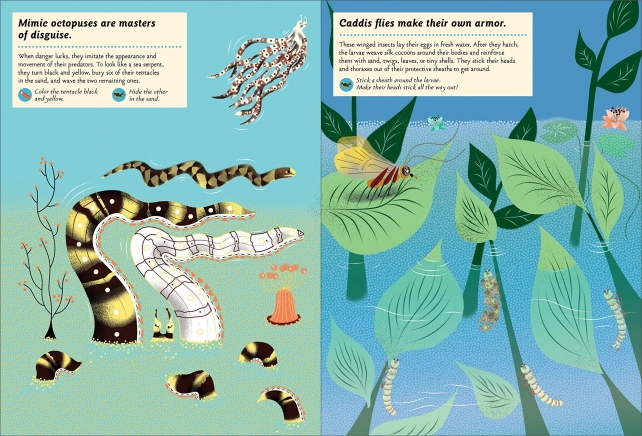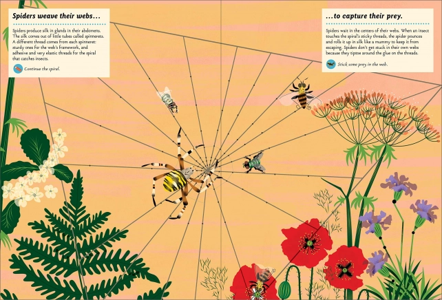 Mit farbenfrohen Illustrationen von Clementine Sourdais und vielen Aktivitäten – vom Ausfüllen der Waben bis zum Platzieren der Beute im Spinnennetz. Am Ende überprüfen Kinder ihr neues Wissen in einem kurzen Quiz.
