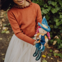 Lernen Sie die bezaubernden Hexen Pim, Pam und Poum kennen – weiche Stoffpuppen mit originellen Accessoires, die Kinder lieben werden. Jede Puppe hat ihren eigenen Stil, alle vereint jedoch die sichere Ausführung mit gestickten Details und weichen Materialien, geeignet bereits ab der Geburt.