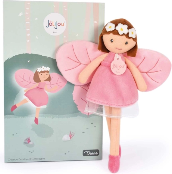 Puppe Diana ist eine zarte Waldfee mit Blumenhaarband, die die kindliche Fantasie anregt und kreatives Spiel fördert. Dank der sorgfältigen Verarbeitung aus weichen Textilien eignet sie sich perfekt zum Umarmen und Kuscheln – tagsüber wie nachts. Die sichere Ausführung ohne kleine abnehmbare Teile und die gestickten Details machen sie zu einer großartigen Begleiterin für Babys und größere Kinder.