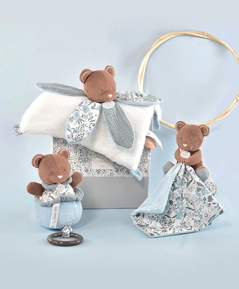 Doudou Plüschbär mit Decke ist der ideale Begleiter für Ihr Baby ab Geburt. Er bringt Weichheit, Komfort und Umarmung, was die Sinne und Neugier der Kinder anregt.