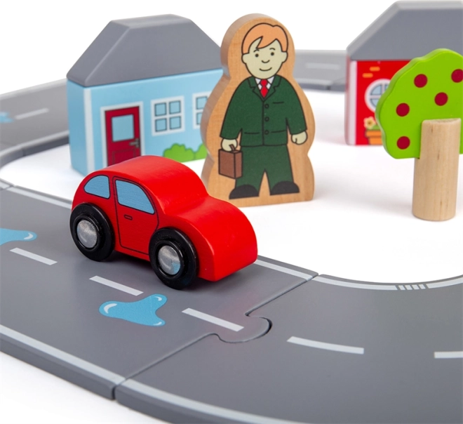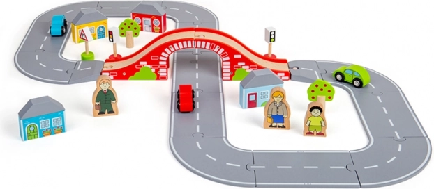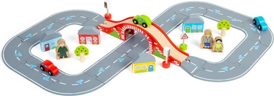 Holzstraße in Achterform von Bigjigs ist das ideale Geschenk für Kinder, die kreatives Spielen lieben. Das Set enthält zahlreiche Holzteile und Zubehör, die Motorik und Fantasie fördern.