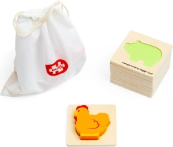 Das Set enthält 8 beliebte Hoftiere und 2 Bauernhof-Motive (Traktor und Scheune). Die Teile sind stabil, farbenfroh und angenehm in der Hand. Dank des kompakten Stoffbeutels ist das Spiel perfekt für Reisen, Restaurantbesuche oder bei den Großeltern.
