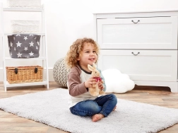 Extra weicher Plüsch und sanfte Verarbeitung sind bereits ab Geburt geeignet – ideal für Bettchen und Kinderwagen.