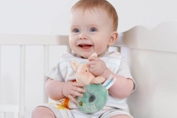 Dieses Spielzeug ist mit einer sanften Rassel ausgestattet, die die Sinnesentwicklung fördert und das Kind durch Klang und Berührung stimuliert.
