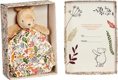 Niedliches und superweiches Schmusetuch mit Winnie-Puuh-Motiv bringt Ruhe, Geborgenheit und eine sanfte Sinnesstimulation dank des farbig gemusterten Stoffs. Hergestellt aus nachhaltigen Materialien mit einer Füllung aus recycelten Plastikflaschen, ist es ab der Geburt sicher und ideal zum Einschlafen und Kuscheln. Geliefert in einer schönen Geschenkbox mit Platz für eine Widmung.